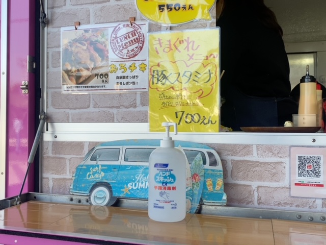 今の職場の近くには飲食店がほとんどなく、愛妻弁当でないときは、コロナ禍の支援を含めてキッチンカーを利用しています。