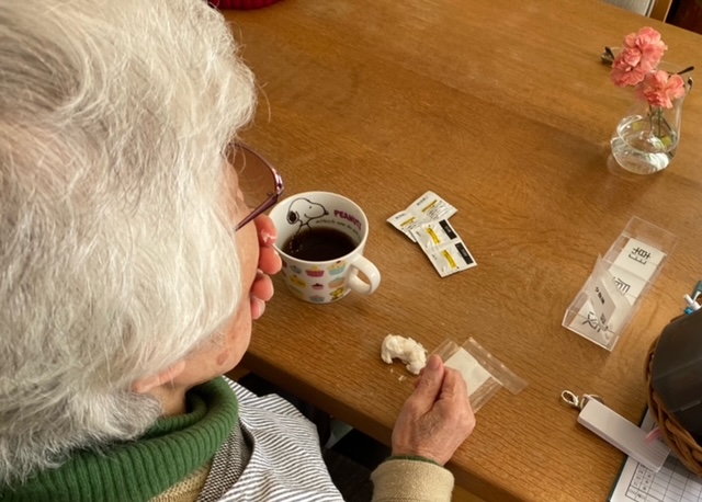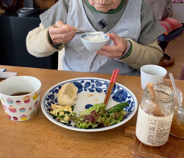 食前の薬を飲んでくださいね、と声をかけると「はい」と言って、薬のところに。