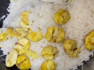 帰宅後に、ネットで栗の剥き方を調べ、義母が苦労して皮を剥いてくれて栗ご飯に!